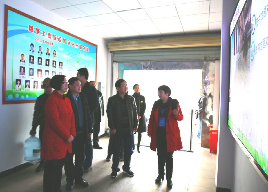 高敬佩副州长一边实地走访座无虚席的少儿部、综合部等读者服务区,与读者进行亲切交流,亲自体验图书自助借还机,一边详细询问春节期间进馆读者人数、外借册次等数据及活动开展情况,州图书馆馆长谭华梅一一作了汇报,并重点介绍了图书馆在文明创建中的创新做法和休闲阅览区改造工程、图书自助借还系统等近期实施的服务读者项目。高副州长对州图书馆的工作给予了充分肯定,向坚守在公共文化服务一线的州图书馆员工表达了诚挚地问候。