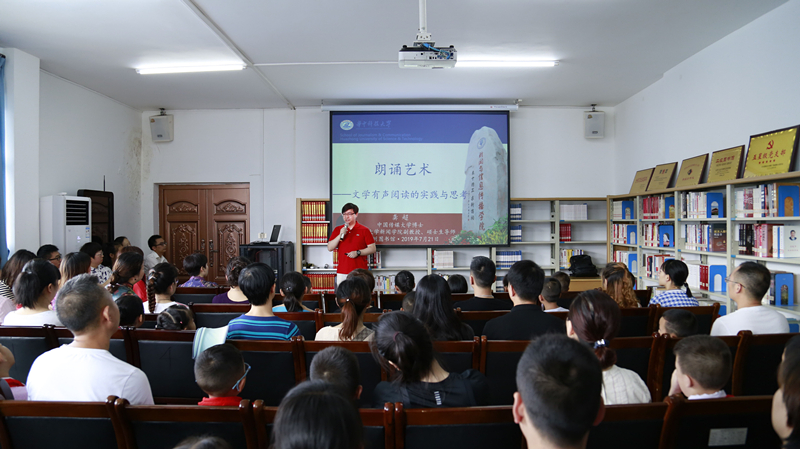 7月21日上午,一场主题为“朗诵艺术——文学有声阅读的实践与思考”公益讲座在恩施州图书馆举行。此次讲座特邀华中科技大学新闻与信息学院副教授、硕士生导师、中央人民广播电台特约研究员龚超担任主讲。