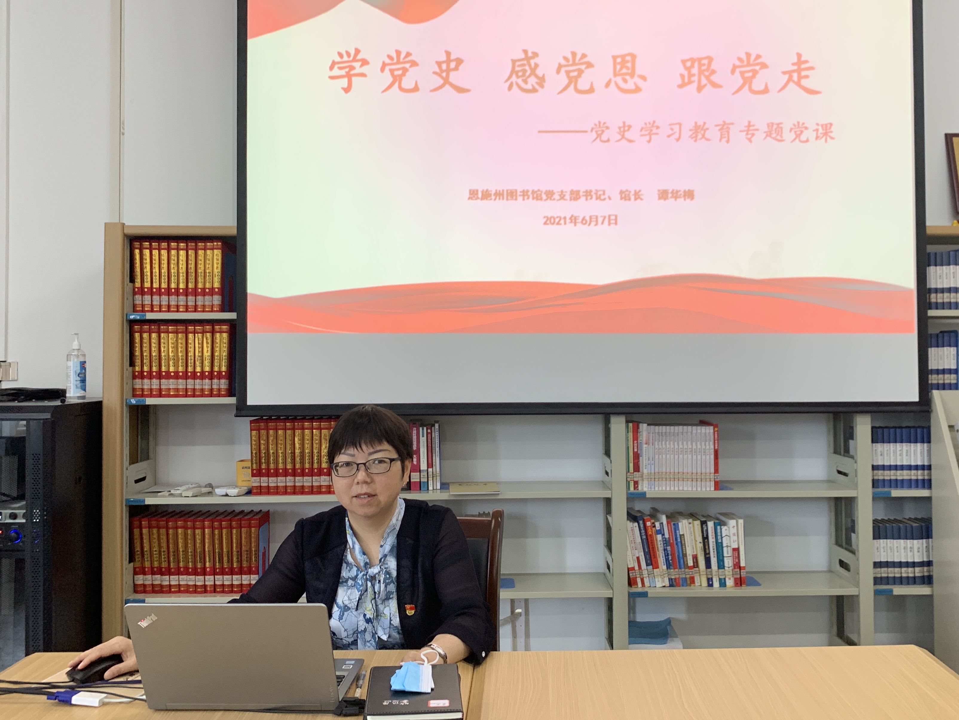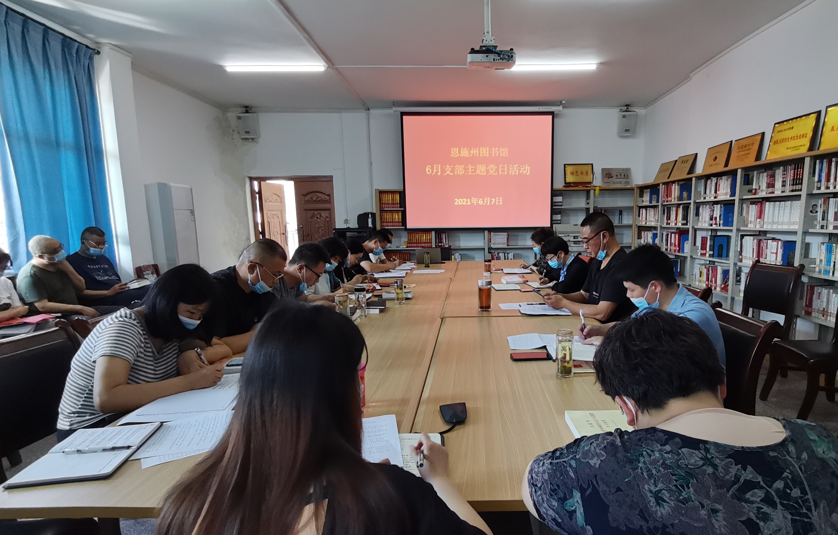 6月7日,恩施州图书馆开展主题为“党建引领促发展,绿色崛起谱新篇”的支部主题党日活动。