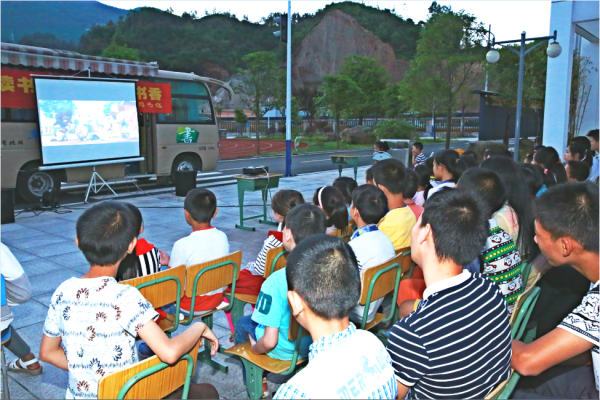 在观看电影的短短两个小时内,孩子们笑声不断。看完影片后,同学们仍然意犹未尽。 “图书馆给我们送来电影,我虽然看不见,可是我第一次听了电影。”一位盲童孩子动情的说。